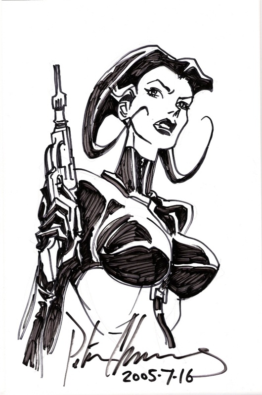 Here an original drawing of Aeon Flux by Peter Chung to one of his adoring fans at Comic-Con in 2005.